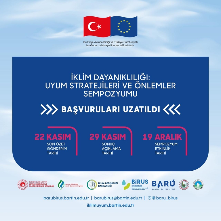 İklim değişikliği, gezegenimiz için en acil ve kapsamlı sorunlardan biri haline gelmiştir. Bartın Üniversitesi’nin koordinatörlüğünde yürütülen Avrupa Birliği IPA-II Projesi kapsamında düzenlenecek olan ‘’İklim Dayanıklılığı: Uyum Stratejileri ve Önlemler Sempozyumu’’ küresel ısınmanın etkilerini, bu değişikliklerin çevresel ve toplumsal sonuçlarını ve bu sorunlarla başa çıkmak için geliştirilmiş stratejileri ele almayı amaçlamaktadır. Katılımcılar, iklim değişikliğinin çeşitli boyutları hakkında bilgi edinme fırsatı bulacak ve çözüm odaklı tartışmalara katılacaklardır.