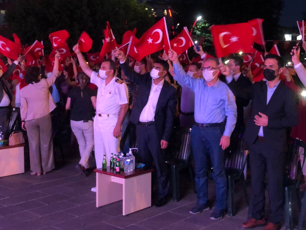 15 Temmuz 2016 gecesi hayatını kaybeden şehitlerimiz için Kur'an-ı Kerim'in okunduğu demokrasi nöbetinde, Cumhurbaşkanımız Recep Tayyip Erdoğan’ın açıklamalarını meydana kurulan ekranlardan canlı olarak izlendi.