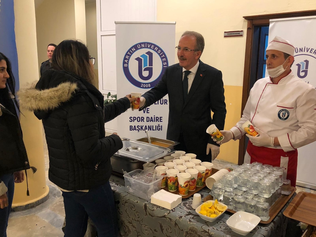 Üniversitemizde güz dönemi final sınavları kapsamında 24 saat açık tutulan merkez kütüphanede, öğrencilere çorba ikramı yapılıyor.
