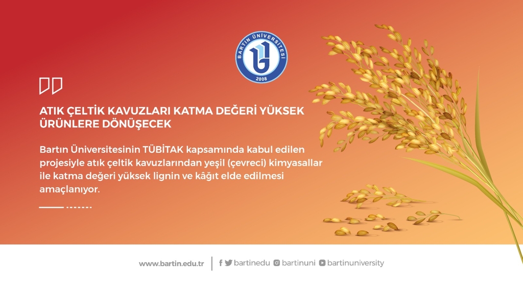 Üniversitemiz Bartın Orman Fakültesi Orman Endüstri Mühendisliği Bölümü Öğretim Üyesi Doç. Dr. Sezgin Koray Gülsoy’un yürütücülüğünü yaptığı, Doç. Dr. Ayhan Gençer ve Doç. Dr. Ayben Kılıç Pekgözlü’nün araştırmacı olarak görev aldığı “Çeltik Kavuzundan Yeşil Kimyasallar ile Lignin ve Kâğıt Eldesi” adlı proje desteklenmeye hak kazandı. TÜBİTAK 1002 - Hızlı Destek Programı kapsamında desteklenen projeyle Yükseköğretim Kurulu (YÖK) tarafından belirlenen öncelikli alanlardan Sürdürülebilir Çevre (Atık, Geri Dönüşüm, Kirleticilerin Etkileri ve Önlenmesi) kapsamında çalışmalar yapılacak ve atık çeltik kavuzlarının katma değeri yüksek ürünlere dönüştürülmesi araştırılacak.