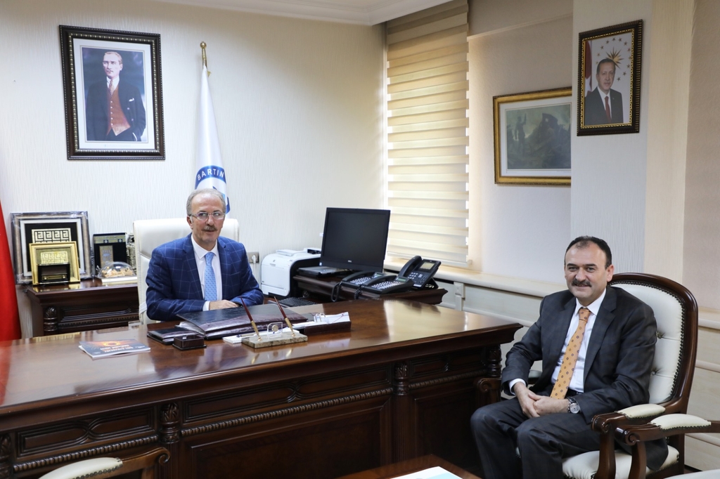 Rektörlük makamında gerçekleşen ziyaretten duyduğu memnuniyeti dile getiren Rektör Uzun, Bartın İl Milli Eğitim Müdürü Çandıroğlu’na yeni görevinde başarılar diledi.