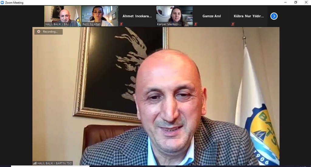 Üniversitemizde çevrimiçi olarak düzenlenen “Marka Yönetimi” konferansına katılan Bartın Ticaret ve Sanayi Odası (Bartın TSO) Başkanı Halil Balık, tecrübelerini öğrencilerle paylaştı.