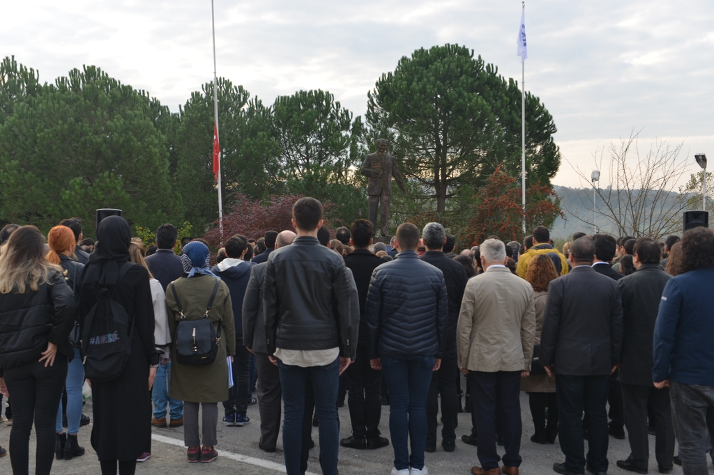 Saatlerin 09.05’i göstermesi ile birlikte katılımcılar Atatürk’ün manevi huzurunda saygı duruşunda bulundu. Ardından okunan İstiklal Marşı ile birlikte bayraklar yarıya indirildi. Törende; akademik birim yöneticileri, öğretim elemanları, idari personel ve öğrenciler hazır bulundu.