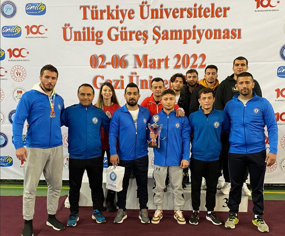 Türkiye Üniversite Sporları Federasyonu tarafından organize edilen Türkiye Üniversiteler Ünilig Güreş Şampiyonasında A Klasman Serbest Stil müsabakaları sona erdi. Gazi Üniversitesi ev sahipliğinde gerçekleştirilen şampiyonada, Üniversitemiz Spor Bilimleri Fakültesi öğrencilerinin oluşturduğu Güreş Takımı Türkiye üçüncüsü olmayı başardı.