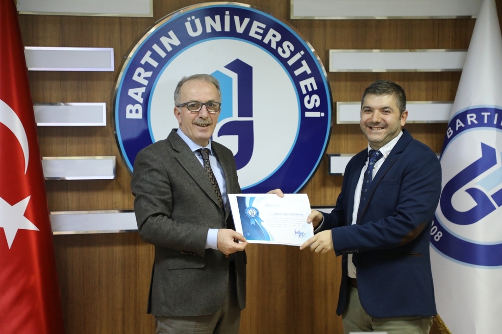 Cumhurbaşkanlığı İnsan Kaynakları Ofisinin 2022’yi “Kamu Personeli Eğitim Atılım Yılı” ilan etmesinin ardından Bartın Üniversitesi de bu sürece katkılar sunmaya devam etmek istiyor. “Uzaktan Eğitim Kapısı”na geçen ilk yükseköğretim kurumu olan Bartın Üniversitesinde farkındalığı yüksek ve özverili personel ödüllendiriliyor. Bu kapsamda 2021 yılında en fazla eğitime katılan Öğr. Gör. Pelin Su Altan, Şef Hüseyin Şahin Gözübüyük ve Enstitü Sekreteri Gülçin Karaoğlu’na Üniversitemiz Rektörü Prof. Dr. Orhan Uzun tarafından başarı belgeleri verildi. Geride bırakılan yılda Altan 50, Gözübüyük 31, Karaoğlu ise 16 farklı eğitimi yerli ve milli bir yazılım olan “Uzaktan Eğitim Kapısı” üzerinden aldı.