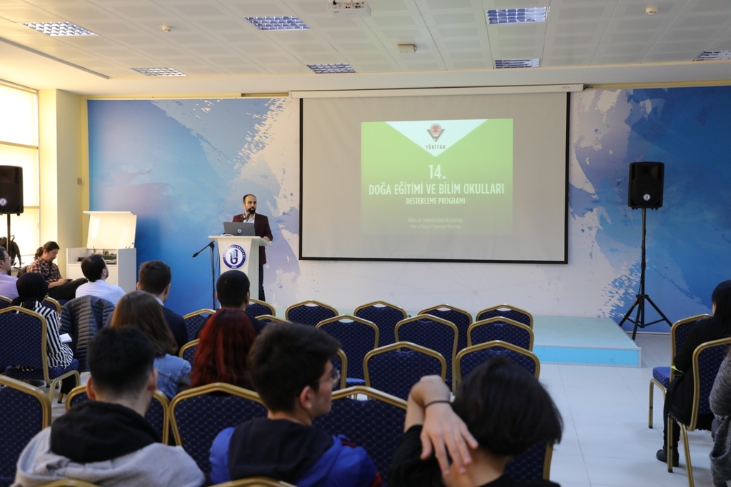 “TÜBİTAK 2209-A Üniversite Öğrencileri Araştırma Projeleri Destek Programı” kapsamında kabul edilen 32 projesiyle 118 üniversite arasından ilk 5’e girmeyi başaran Üniversitemizde, proje yazma ve yürütme eğitimleri devam ediyor. Bu kapsamda Proje ve Teknoloji Ofisi (PTO) Genel Koordinatörlüğü tarafından düzenlenen seminerde, “TÜBİTAK 2209-A Üniversite Öğrencileri Araştırma Projeleri Destek Programı” ile TÜBİTAK 4004 Doğa Eğitimi ve Bilim Okulları Destekleme Programı” hakkında bilgiler verildi.