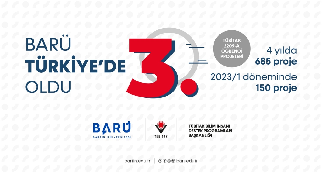 Bartın Üniversitesi (BARÜ) öğrencileri TÜBİTAK 2209-A kapsamında kabul edilen proje sayısını 4’üncü yılda 685’e yükselterek 2023/1 döneminde Türkiye 3’üncüsü olmayı başardı.