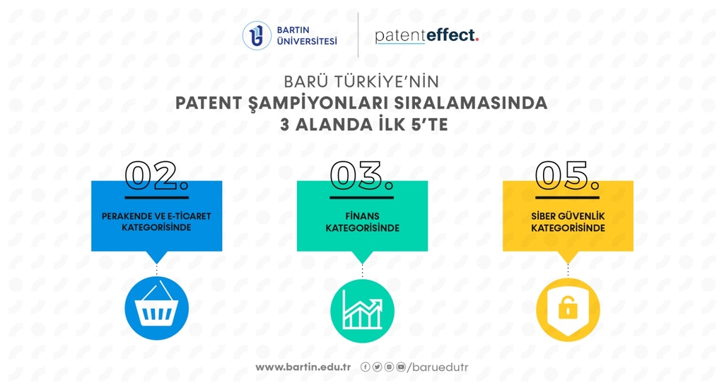 Bartın Üniversitesi (BARÜ) 2022 yılı patent performansının değerlendirildiği sıralamada “Siber Güvenlik”, “Finans” ve “Perakende ve E-ticaret” alanlarında Türkiye’de ilk 5’te yer almayı başardı.