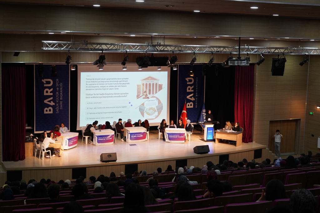 Bartın Üniversitesinde (BARÜ) Kadın ve Aile Çalışmaları Uygulama ve Araştırma Merkezi koordinasyonunda 8 Mart Dünya Kadınlar Günü etkinlikleri düzenlendi. Gün boyu süren ve yoğun ilgi gören programda panellerden atölyelere, bilgi yarışmasından sergi ve konsere kadar birçok etkinlik yer aldı. 8 Mart Dünya Kadınlar Günü etkinlikleri Kutlubey Yerleşkesi’nde “Sınırların Ötesinde Kadın: Haklar ve Umutlar Paneli”, Ağdacı Yerleşkesi’nde “Bağımlılıkla Mücadelede Toplumsal Rollerin Etkisi Konferansı” ile başladı.