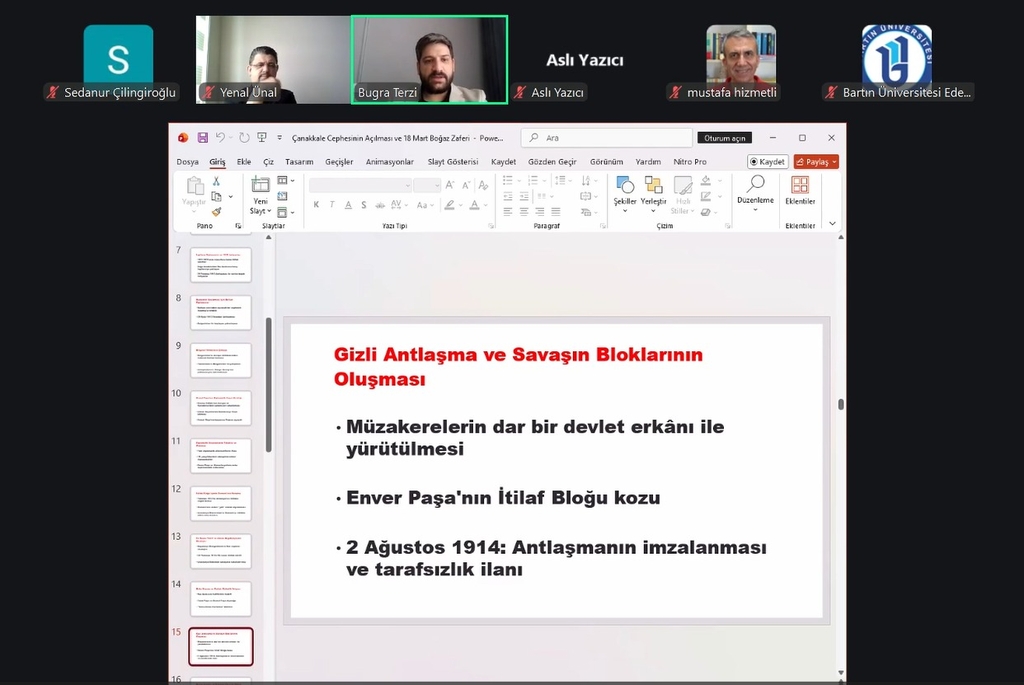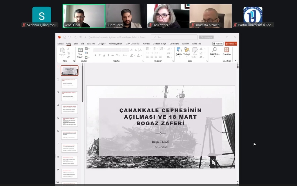 Bartın Üniversitesinde (BARÜ) düzenlenen etkinlikte Çanakkale cephesinin açılmasından 18 Mart Çanakkale Zaferi’ne uzanan süreç askerî ve stratejik boyutlarıyla ele alındı.