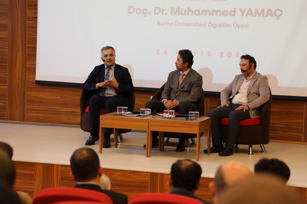 Bartın Üniversitesinde (BARÜ) Bilim, Kültür, Sanat ve Spor Günleri kapsamında “Filistin’i Anlamak” konulu panel düzenlendi. BARÜ Kütüphane Konferans Salonunda gerçekleştirilen etkinliğin moderatörlüğünü İslami İlimler Fakültesi Dekanı Prof. Dr. Erol Kırdar yaptı. Orta Doğu uzmanı, gazeteci-yazar Güngör Yavuzaslan ile BARÜ İslami İlimler Fakültesi Öğretim Üyesi Doç. Dr. Muhammed Yamaç konuşmacı olarak yer aldı.