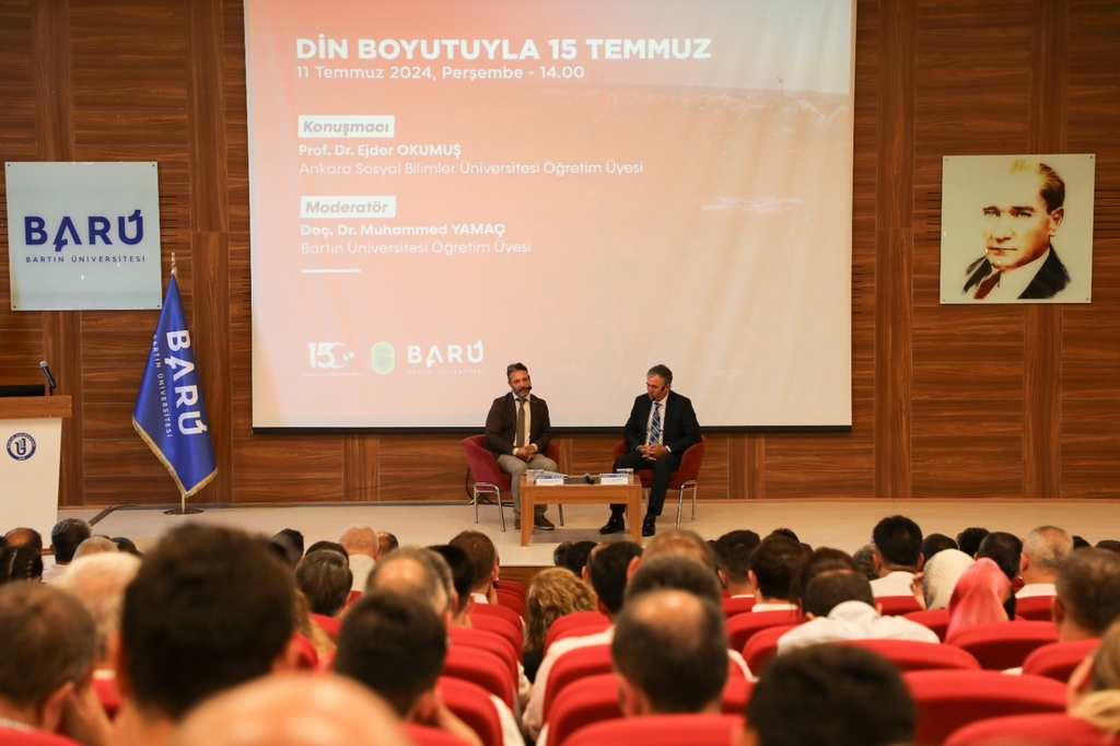 Bartın Üniversitesinde (BARÜ) “15 Temmuz Demokrasi ve Milli Birlik Günü” dolayısıyla gerçekleştirilen konferansta 15 Temmuz darbe girişimi dini boyutuyla incelenerek birlik ve beraberlik mesajı verildi.