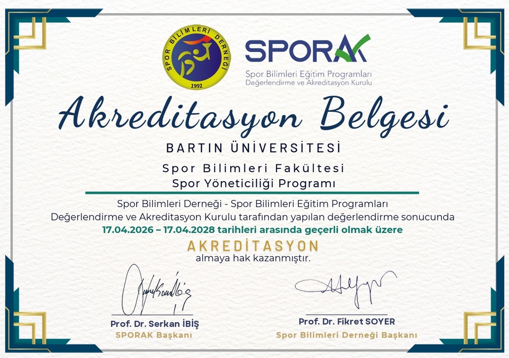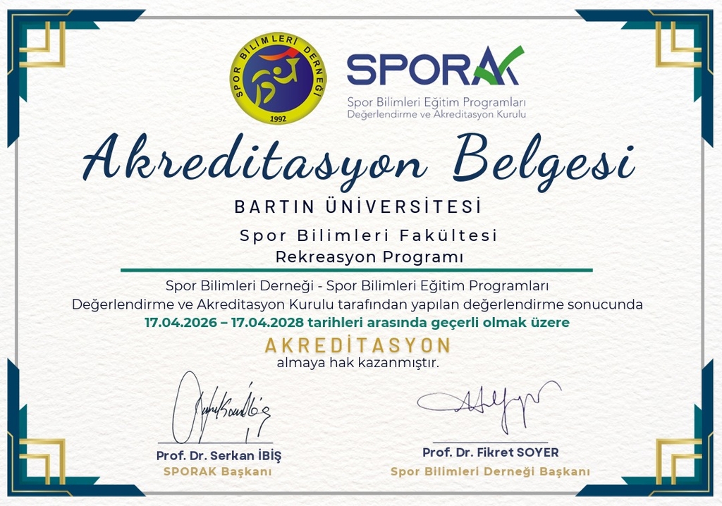 Bartın Üniversitesi (BARÜ) Spor Bilimleri Fakültesinde Spor Yöneticiliği Bölümü ve Rekreasyon Bölümü akredite olarak eğitim kalitesini tescilledi.