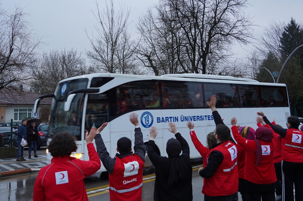 Bartın Üniversitesi (BARÜ) depremden etkilenen iller için insan kaynağı ve ayni yardım desteğini sürdürüyor. Adıyaman Gölbaşı ilçesinde Kızılay koordinasyonunda yürütülen çalışmalara destek vermek için gönüllülerden oluşan 40 kişilik ekip afet bölgesine geçti. Kızılay Bartın İl Başkanlığı önünden hareket eden insani destek ekibi edilen duaların ardından yola çıktı. Destek ekibini taşıyan otobüse çeşitli yaşam ve yardım malzemeleri de yüklendi.