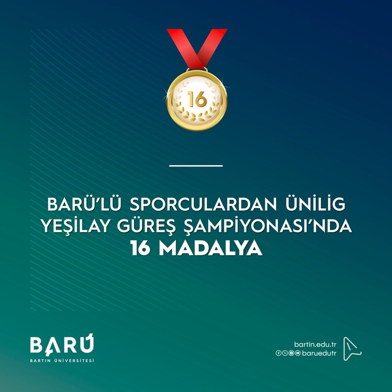 Türkiye Üniversite Sporları Federasyonu (TÜSF) tarafından Burdur Mehmet Akif Ersoy Üniversitesi (MAKÜ) ev sahipliğinde ÜNİLİG Yeşilay Türkiye Güreş Şampiyonası düzenlendi. Bartın Üniversitesi (BARÜ) Spor Bilimleri Fakültesi öğrencileri 63 üniversiteden 619 sporcunun katılımıyla gerçekleştirilen organizasyondan 16 madalya ile döndü.
