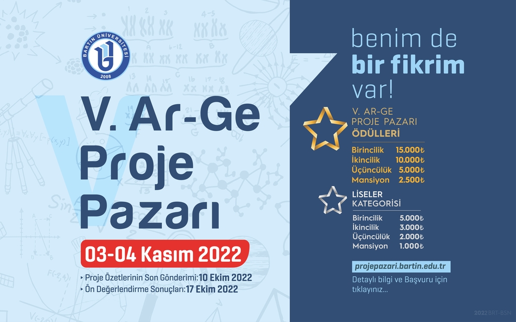 Bölgenin en önemli bilim ve teknoloji etkinliklerinden biri olan Bartın Üniversitesi (BARÜ) “Ar-Ge Proje Pazarı” heyecanı yeniden başlıyor. 2017 yılından bu yana yoğun bir ilgiyle gerçekleştirilen etkinlik kapsamında bu yıl da rekor başvuru bekleniyor. Bilim ve teknoloji konusunda farkındalığı artırmak, gençlerin geleceği şekillendirecek gelişmelere odaklanmaları sağlamak amacıyla düzenlenen organizasyonla Milli Teknoloji Hamlesi’ne katkılar sunulması hedefleniyor.