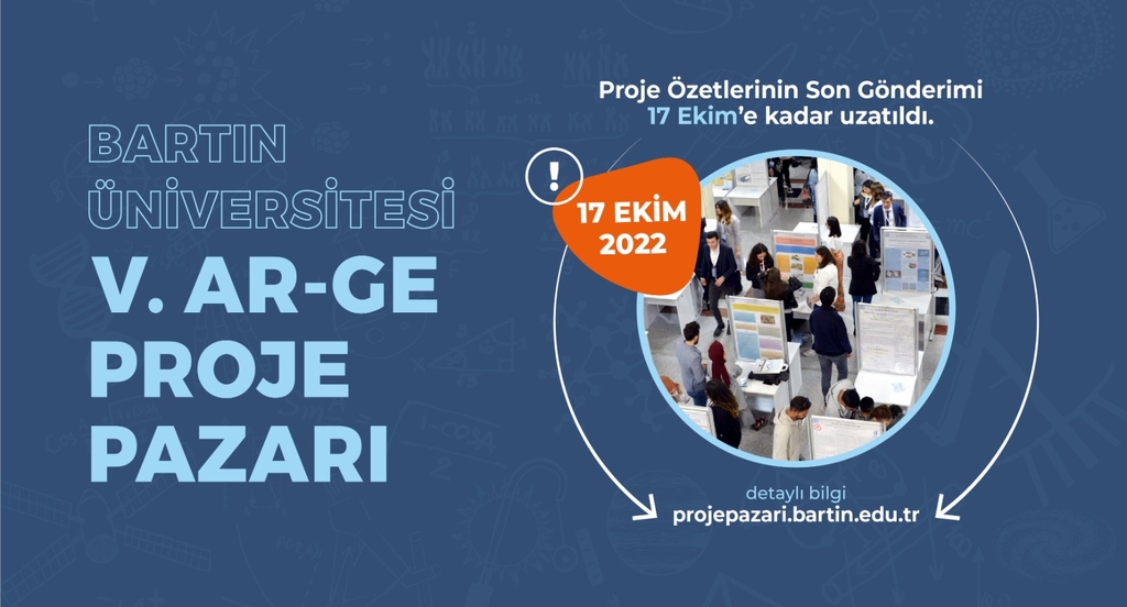 Bartın Üniversitesinin (BARÜ) bilim ve teknoloji tutkunlarını bir araya getirdiği “Ar-Ge Proje Pazarı” etkinliğinde başvuru süresi gelen talepler üzerine 17 Ekim 2022 tarihine kadar uzatıldı.