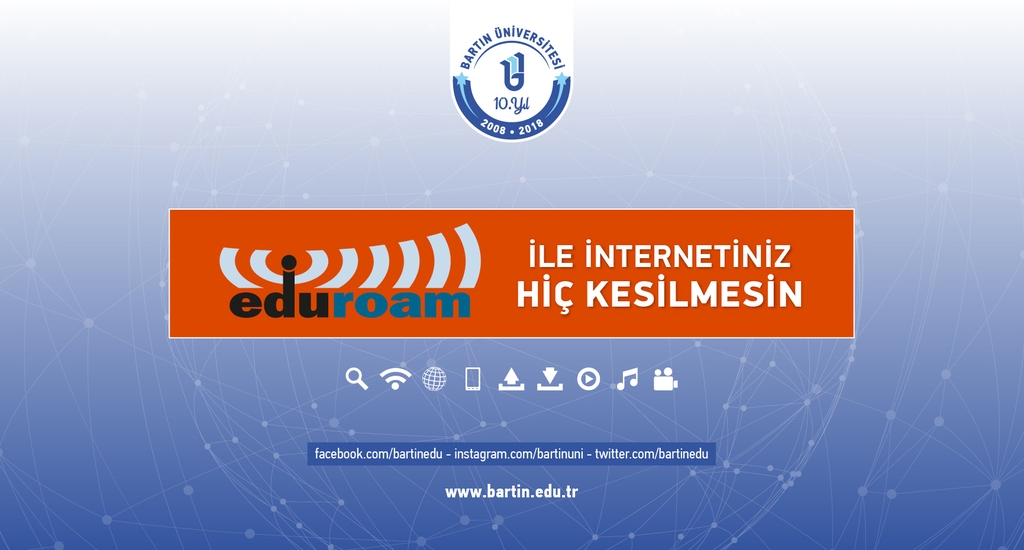Üniversitemizin de üyesi olduğu Education Roaming kelimelerinin kısaltması olan ‘EDUROAM’ internete ulaşmada büyük kolaylık sağlıyor. Bu ağın kullanımı için öğrencilerin kullanıcı adları (ogrencino@webmail.bartin.edu.tr) ve şifrelerini girmeleri yetiyor.