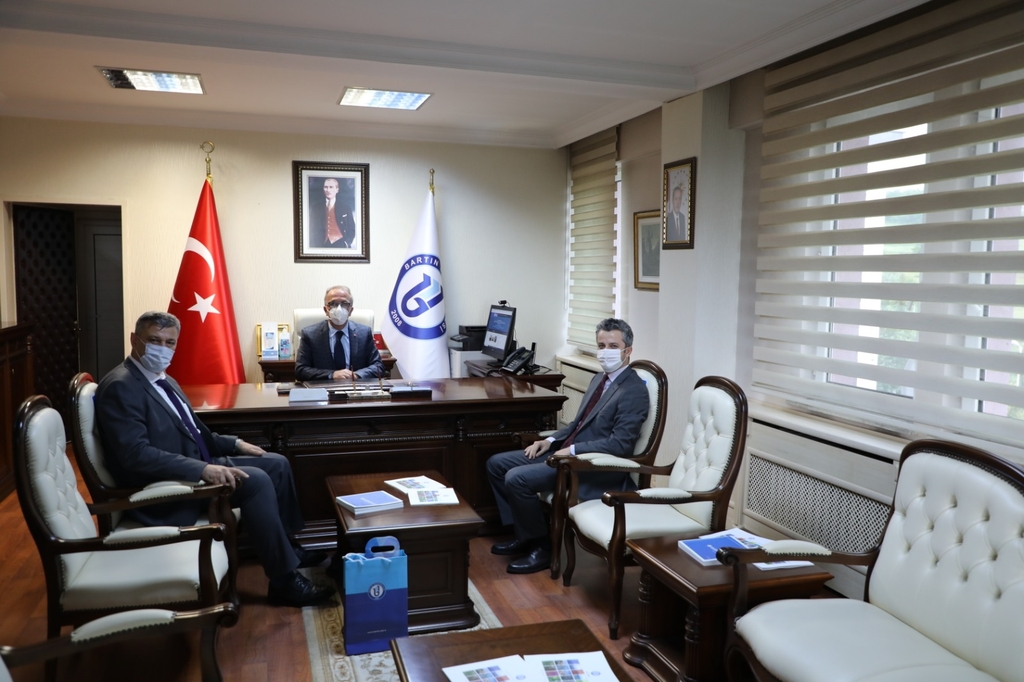 Bartın Ticaret İl Müdürü Erhan Özcan ile Bartın İl Göç İdaresi Müdürü Fatih Ofluoğlu, Üniversitemiz Rektörü Prof. Dr. Orhan Uzun’u ziyaret ettiler.