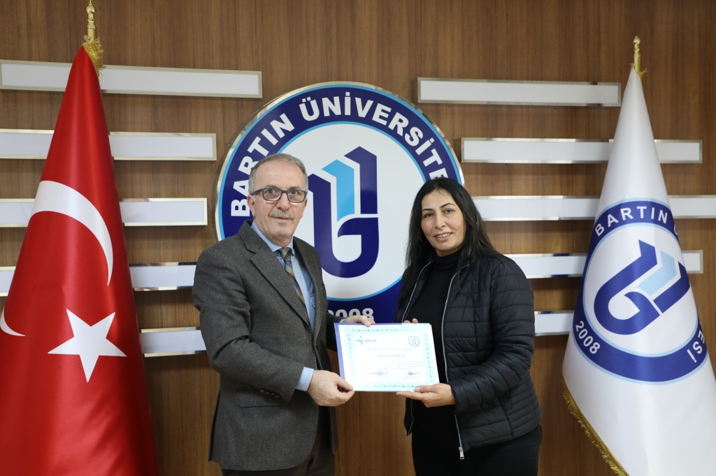 Üniversitemiz Sağlık Bilimleri Fakültesi ile Türkiye İş Kurumu Bartın İl Müdürlüğü, Bartın Sosyal Dayanışma ve Yardımlaşma Vakfı ile AKTIP Sağlık Hizmetlerinin iş birliğiyle sürdürülen “Sağlıklı Yaşama Destek için Biz de Varız” adlı proje kapsamında “Öz Bakıma Destek Elemanı Kurs Programı” tamamlandı. Program kapsamında eğitimlerini başarıyla tamamlayan 10 engelli kursiyere belgeleri verildi. Kursu en yüksek başarıyla tamamlayan Zehra Coşkun’un AKTIP Sağlık Hizmetleri bünyesinde istihdamı sağlanacak.