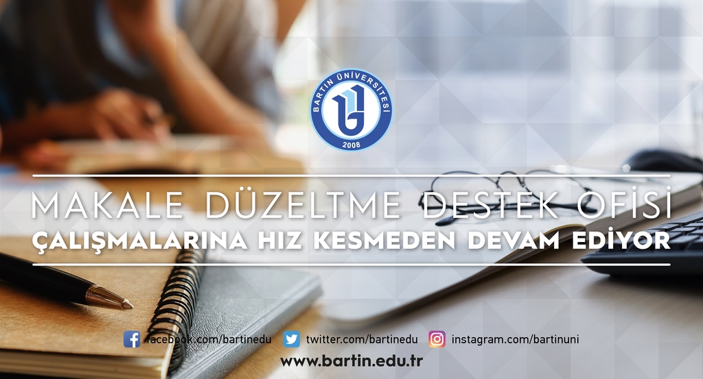 Makale Düzeltme Destek Ofisi’nde; Bartın Üniversitesi Öğretim Elemanları Dr. Öğr. Üyesi Fadime Çoban Odacıoğlu, Dr. Öğr. Üyesi Burcu Şentürk, Dr. Öğr. Üyesi Mehmet Cem Odacıoğlu, Arş. Gör. Ayşenur Kırık, Arş. Gör. Alper Çalık, Arş. Gör. Betül Çimenli ve Arş. Gör. Kenan Çetin gönüllü olarak yer alıyor.