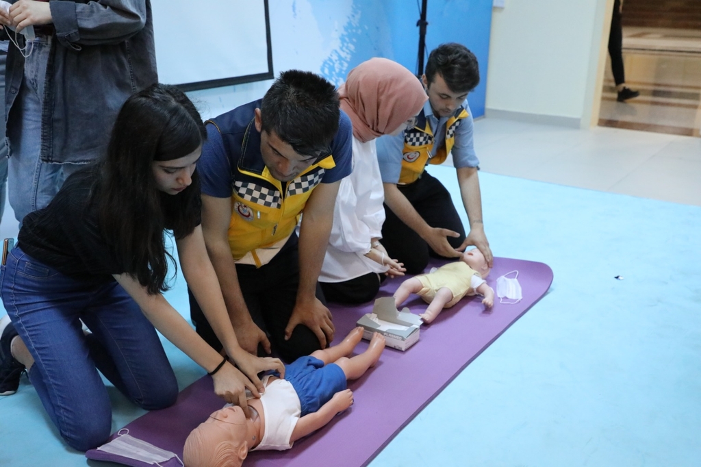 Çocuk, bebek ve yetişkinler için temel yaşam desteği konusunun uygulamalı olarak anlatıldığı eğitimde, yaşanabilecek ani bir durum karşısında hasta ya da yaralının nasıl değerlendirileceğiyle ilgili ilk yardım teknikleri ve uygulamaları anlatıldı.