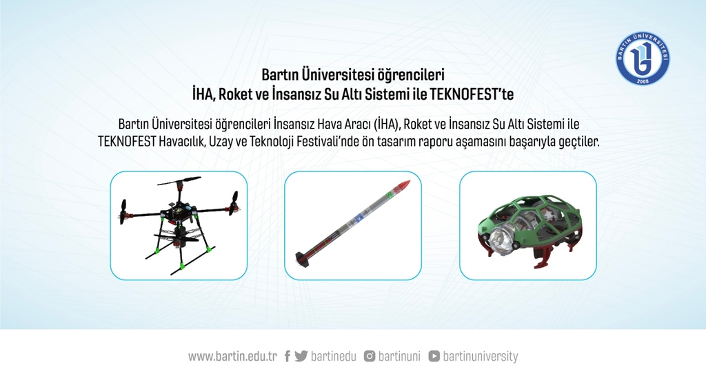 “Gökyüzünün aydınlığından suyun derinliğine kadar çalışmaya devam” sloganıyla yoğun bir gayret gösteren öğrenciler kurdukları Tunga İHA Takımı ile döner kanat kategorisinde, Black Sea 1460 Roket Takımı ile orta irtifa kategorisinde ve Parthenia Rov-Auv Takımı ile insansız sualtı sistemleri ileri kategorisinde başarılı bulundular.
