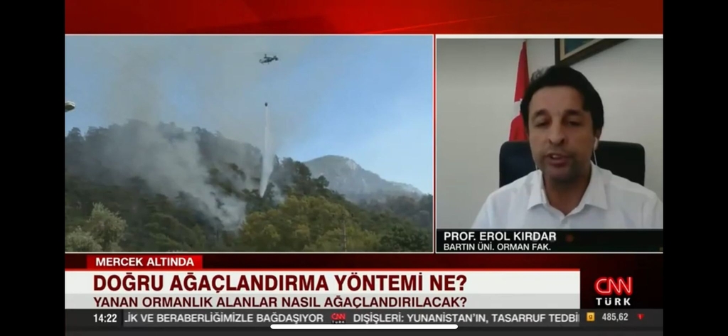 Üniversitemiz Bartın Orman Fakültesi Öğretim Üyesi Prof. Dr. Erol Kırdar, CNN Türk canlı yayınında Türkiye’de devam eden yangınlarla ilgili açıklamalarda bulunarak yangın sonrası yapılabilecekleri sıraladı.