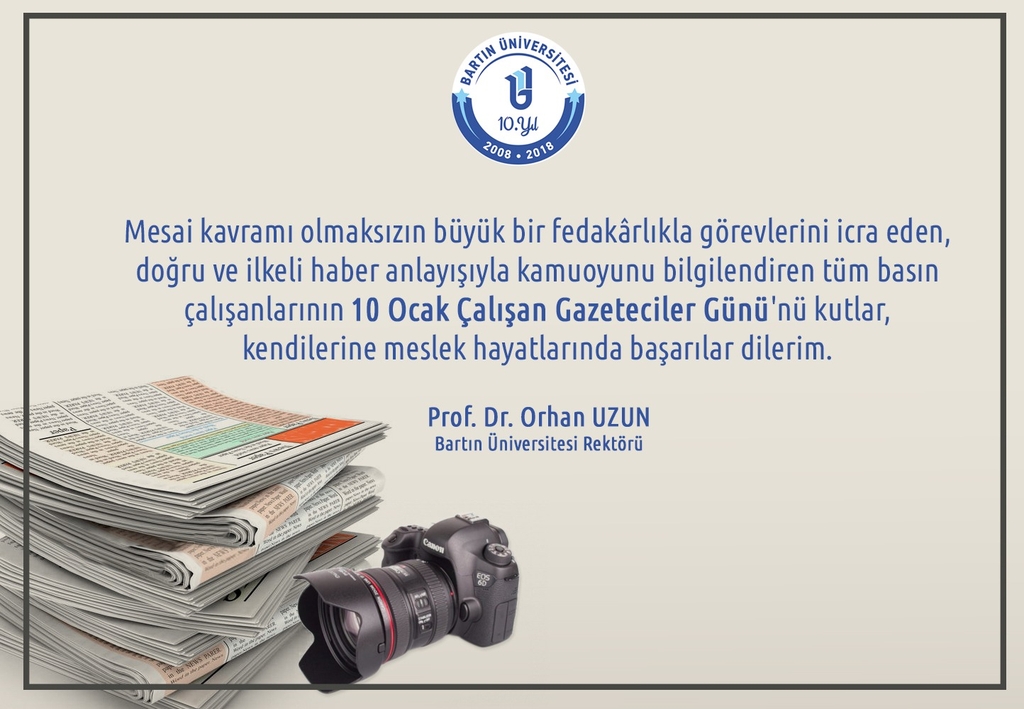 Rektör Uzun, gazeteciliğin özverili ve mesai kavramı olmaksızın yapılan zor bir meslek olduğunu da kaydederek “Çalışma şartlarının zorluklarına rağmen işlerini en iyi şekilde yapmaya çalışan tüm basın çalışanlarımızın '10 Ocak Çalışan Gazeteciler Günü’nü tebrik eder, çalışmalarında başarılar dilerim.” diye konuştu.