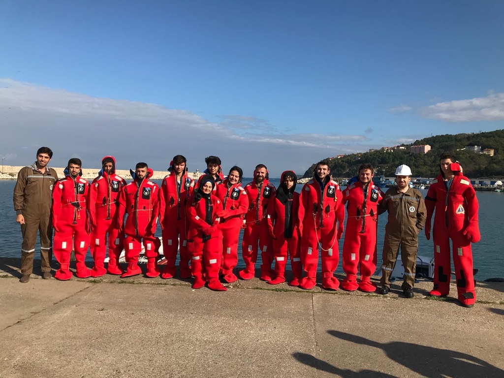 Kurucaşile Liman mevkiinde gerçekleştirilen eğitimlerde, Gemi Geri Dönüşüm Sanayicileri Derneği tarafından Bartın MYO Ulaştırma Hizmetleri Bölümüne bağışlanan denizcilik ekipmanları kullanıldı. Öğretim elemanları ve öğrencilerin yer aldığı eğitimlerde, batmak üzere olan tekneden acil kaçış ve denizde canlı kalabilme senaryolarını canlandırdı.