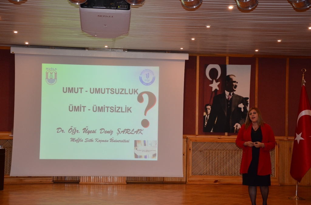 Konferansın konuğu Muğla Sıtkı Koçman Üniversitesi Dr. Öğretim Üyesi Deniz Şarlak ‘umut’ kavramının çok farklı anlamlarda kullanıldığından bahsederek ‘umut’ ve ‘ümit’ kavramlarının birbiri ile karıştırılmaması gerektiğini söyledi.