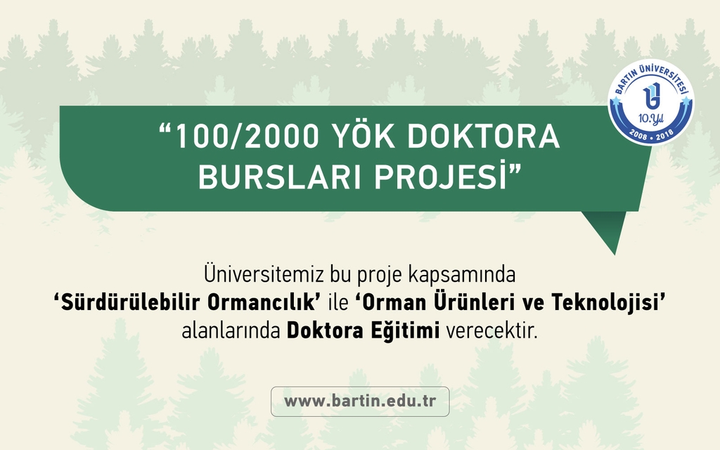 Üniversitemiz, Yükseköğretim Kurulu’nun (YÖK) “100/2000 YÖK Doktora Bursları Projesi” kapsamında “Sürdürülebilir Ormancılık” ile “Orman Ürünleri ve Teknolojisi” alanlarında doktora eğitimi verecek.