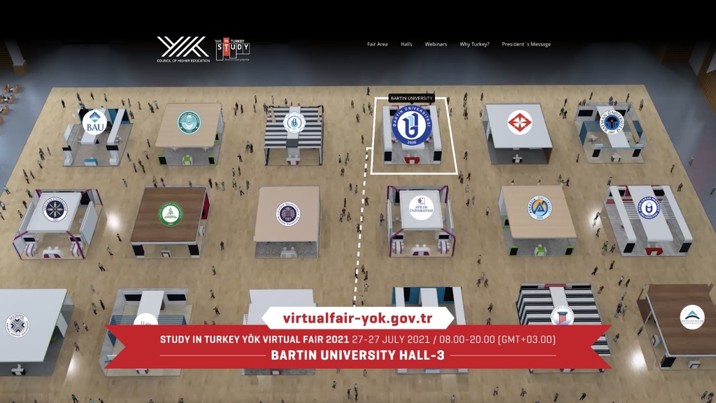 Yükseköğretim Kurulunca (YÖK), küresel yeni tip koronavirüs (Kovid-19) salgını sürecinde kısıtlanan öğrenci hareketliliğinin olumsuz etkilerini azaltmak ve bu süreçte Türk üniversitelerini yurt dışında dijital ortamlarda da tanıtmak amacıyla düzenlenen “Study in Turkey YÖK Sanal Fuarı 2021” başladı. 27-29 Temmuz 2021 tarihleri arasında devam edecek sanal fuarda, öğrenciler Türkiye’deki üniversitelere dijital platform üzerinden erişiyor.