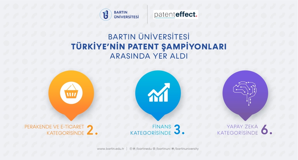 Üniversitemiz, 2021 yılının değerlendirildiği sıralamada “Perakende ve E-ticaret”, “Finans” ve “Yapay Zeka” kategorilerinde Türkiye’nin Patent Şampiyonları arasında yer aldı.