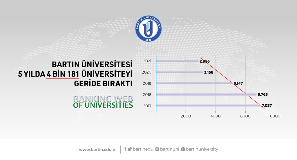 Üniversitemiz, Webometrics Dünya Üniversite Sıralamaları (Webometrics Ranking of Universities) değerlendirmesine göre 5 yılda 4 bin 181 üniversiteyi geride bırakmayı başardı.