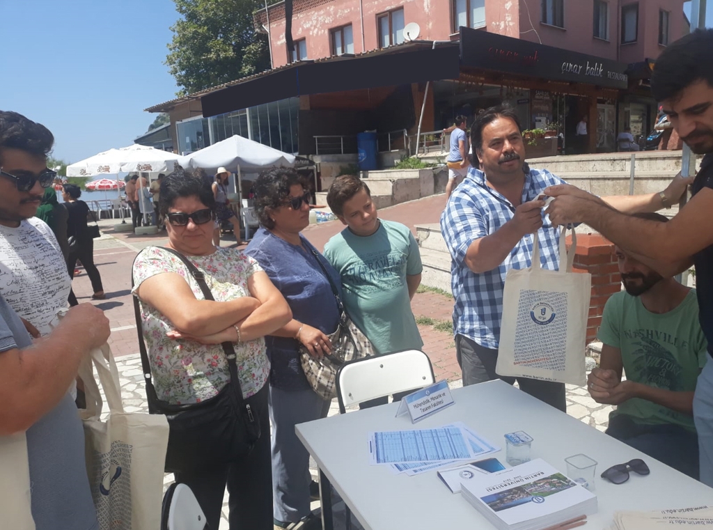 Üniversitemiz tarafından tarihi yapıları, doğal güzellikleri ve sahilleriyle tanınan Bartın'ın Amasra ilçesinde ‘Tanıtım ve Tercih Günleri’ düzenlendi. 20-21 Temmuz 2019 tarihleri arasında gerçekleştirilen tanıtım günleri kapsamında Barış Akarsu Parkı’na stantlar kuruldu. Her gün yurt içi ve yurt dışından binlerce turistin geldiği Amasra’da, stantları ziyaret eden aday öğrenciler ve ailelerine öğretim elemanları tarafından bilgiler verildi.