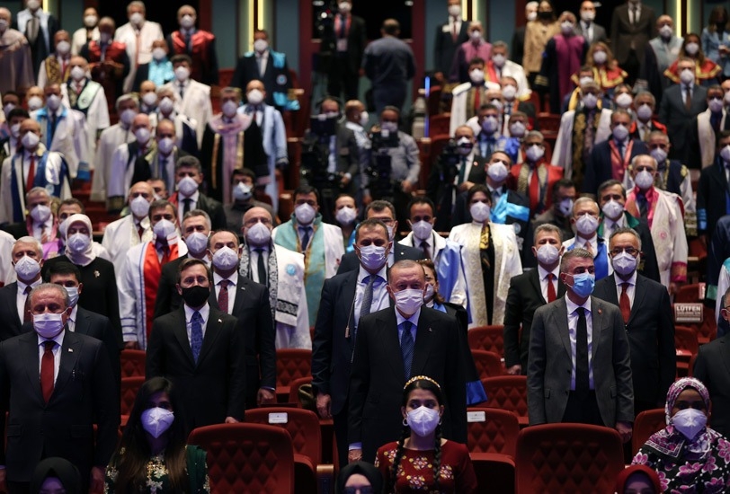 Tören, Cumhurbaşkanımız Sayın Recep Tayyip Erdoğan'ın teşrifleriyle Cumhurbaşkanlığı Külliyesi Beştepe Millet Kongre ve Kültür Merkezi'nde düzenlendi. Burada konuşan Cumhurbaşkanımız Erdoğan, üniversitelerin 2021-2022 Akademik Yılı’nın ülke ve millet için hayırlara vesile olmasını dileyerek “Yükseköğretimde, bugün hem yeni akademik yılın açılışını yapmanın hem de yeniden yüz yüze eğitim-öğretime başlamanın sevincini yaşıyoruz. Salgın tehdidine karşı gereken tedbirleri almak suretiyle, üniversitelerimizde eğitim-öğretimin kesintisiz sürmesi konusunda kararlıyız” dedi.