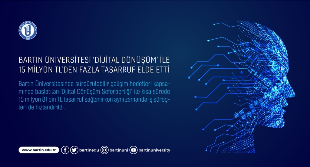 Üniversitemizde sürdürülebilir gelişim hedefleri kapsamında başlatılan ‘Dijital Dönüşüm Seferberliği” ile kısa sürede 15 milyon 81 bin TL tasarruf sağlanırken aynı zamanda iş süreçleri de hızlandırıldı.
