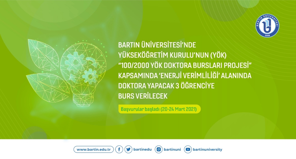 Üniversitemizde Yükseköğretim Kurulu’nun (YÖK) “100/2000 YÖK Doktora Bursları Projesi” kapsamında ‘Enerji Verimliliği’ alanında doktora yapacak 3 öğrenciye burs verilecek.