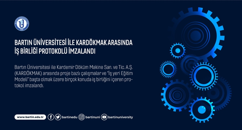 Üniversitemizde bölgenin kalkınmasına yönelik kamu-üniversite-sanayi iş birliği geliştirilmesini hedefleyen adımlar atılmaya devam ediliyor. Bu kapsamda Bartın Üniversitesi ile Kardemir Döküm Makine San. ve Tic. A.Ş. (KARDÖKMAK) arasında imzalanan protokol ile ‘Endüstri 4.0’, ‘Lojistik 4.0’, ‘Sürekli İyileştirme’, ‘Verimlilik’, ‘Ar-Ge’, ‘TÜBİTAK’, ‘SANTEZ’ ve ‘AB Projeleri’ gibi konularda iş birliğine gidilecek.