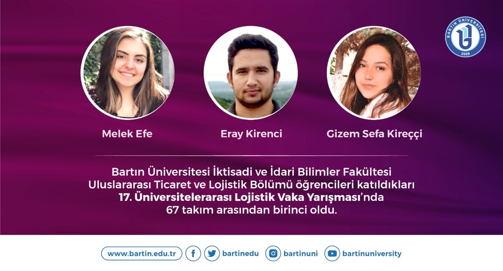 Mars Logistics ve Lojistik Derneği (LODER) iş birliğiyle gerçekleştirilen ve bu yıl 17’ncisi düzenlenen Üniversitelerarası Lojistik Vaka Yarışması’nın sonuçları açıklandı. Lojistik zeka, ekip çalışması, proje yönetimi gibi pek çok donanıma hâkim olmayı gerektiren, sektörü yakından tanıma ve analiz etme imkanı sunan 17. Üniversitelerarası Lojistik Vaka Yarışması’nda Üniversitemiz öğrencileri büyük bir başarı elde etti. Üniversitemiz İktisadi ve İdari Bilimler Fakültesi Uluslararası Ticaret ve Lojistik Bölümü öğrencileri Melek Efe, Eray Kirenci ve Gizem Sefa Kireççi’den oluşan ekip yarışmaya katılan 67 takım arasından birinci olmayı başardı. Tüm aşamaları başarıyla tamamlayan Üniversitemiz öğrencileri 4 bin 500 liralık ödülün yanı sıra Mars Lojistikte yaz döneminde staj yapma hakkı kazandı.