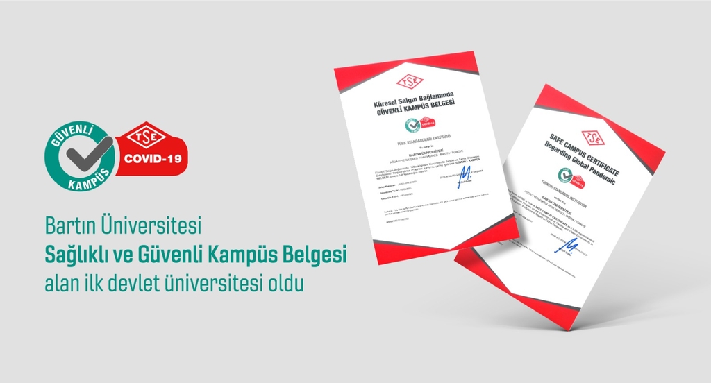 Üniversitemizde Yükseköğretim Kurulu (YÖK) ile TSE arasında imzalanan iş birliği protokolü ile hazırlanan “Küresel Salgın Bağlamında Yükseköğretim Kurumlarında Sağlıklı ve Temiz Ortamların Geliştirilmesi Kılavuzu” kapsamında önemli çalışmalar gerçekleştirildi. Üniversitemiz Genel Sekreteri Doç. Dr. Said Ceyhan başkanlığındaki ekipler, yaptıkları çalışmalarla kılavuzdaki tüm yükümlülüklerin tam anlamıyla sağlanmasında önemli rol oynadı. Yapılan incelemelerin ardından Bartın Üniversitesi “Sağlıklı ve Güvenli Kampüs Belgesi” alan ilk devlet üniversitesi oldu.