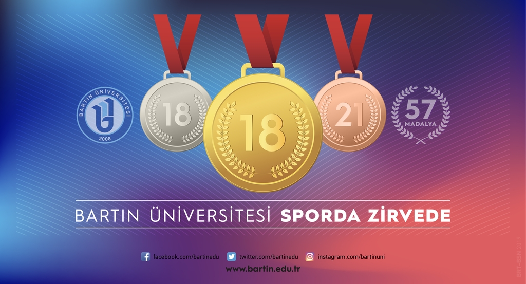 Üniversitemiz Spor Bilimleri Fakültesi öğrencileri, Üniversite Sporları Federasyonu tarafından 2018-2019 döneminde gerçekleştirilen şampiyonalarda, Bartın’a 57 madalya getirdi. Üniversitemiz sporcuları 18 altın, 18 gümüş ve 21 bronz madalya alarak, 141 üniversite arasından yapılan değerlendirmede Türkiye birinciliğini iki üniversite ile birlikte paylaştı. Altın madalya sıralamasında ise Üniversitemiz 5’inci sırada yer almayı başardı.