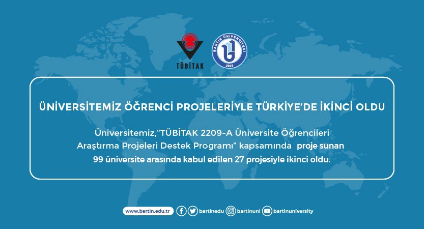 Üniversitemiz, “TÜBİTAK 2209-A Üniversite Öğrencileri Araştırma Projeleri Destek Programı” kapsamında proje sunan 99 üniversite arasında kabul edilen 27 projesiyle ikinci oldu.