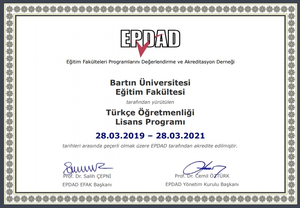 Üniversitemiz Eğitim Fakültesi Türkçe Öğretmenliği Programı, Eğitim Fakülteleri Eğitim Programlarını Değerlendirme ve Akreditasyon Derneği (EPDAD) tarafından akredite edildi.