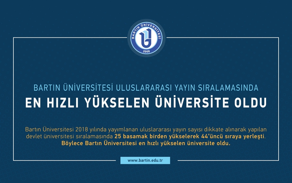 Üniversitemiz, 2018 yılında yayımlanan uluslararası yayın sayısı dikkate alınarak yapılan devlet üniversitesi sıralamasında 25 basamak birden yükselerek 44’üncü sıraya yerleşti. Böylece Üniversitemiz uluslararası yayın sıralamasında en hızlı yükselen üniversite oldu.