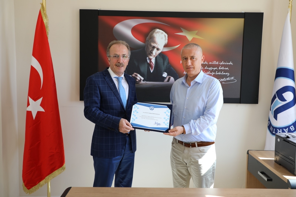 Dekanlıkları ziyaret ederek yeni görevlerine başlayan öğretim üyelerine hayırlı olsun ziyaretinde bulunan Üniversitemiz Rektörü Prof. Dr. Orhan Uzun, “Bartın Üniversitesi her geçen gün kendisini biraz daha geliştirerek büyümeye devam ediyor. Fakülte sayısını 9’a çıkaran Üniversitemizde bir yüksekokul ile 3 meslek yüksekokulunda bölgemizin ve ülkemizin gelişimine katkı sunma hedefiyle çalışmalar yürütülüyor. Bu noktada atamaları yapılarak yeni görevlerine başlayan Fen Fakültesi Dekanımız Prof. Dr. Handan Ucun Özel’in, İktisadi ve İdari Bilimler Fakültesi Dekanımız Prof. Dr. Şaban Esen’in ve Sağlık Bilimleri Fakültesi Dekanımız Prof. Dr. Selman Karayılmazlar’ın Üniversite olarak hedeflerimize katkı sunmaya devam edeceğine inanıyor, yeni görevlerinde başarılar diliyorum.” dedi.