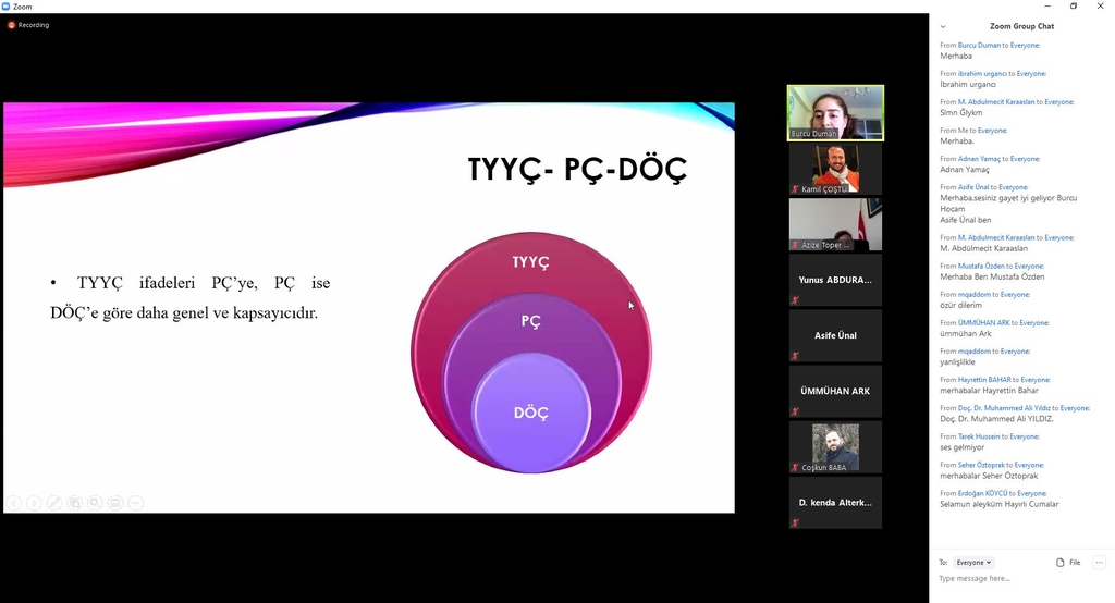 İslami İlimler Fakültesi tarafından, Dekan Prof. Dr. Azize Toper Kaygın’ın başkanlığında gerçekleştirilen toplantıya fakülte öğretim elemanlarıyla birlikte Eğitim Fakültesi öğretim elemanları Dr. Öğr. Üyesi Burcu Şentürk, Doç. Dr. Burcu Duman ve Dr. Öğr. Üyesi Hasan Basri Kansızoğlu katıldı. Toplantıda; TYYÇ (Türkiye Yükseköğretim Yeterlikler Çerçevesi), PÇ (Program Çıktısı) ve ÖÇ (Öğrenim Çıktısı) arasındaki ilişki anlatıldıktan sonra ders bilgi paketlerinin girilmesinde dikkat edilmesi gereken hususlar ve BLOOM Taksonomisi üzerinde duruldu. Ayrıca öğrenme kazanımları hazırlanırken kullanılan ifade türleri örnek verilerek anlatıldı.