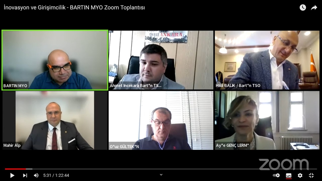 Üniversitemiz Bartın Meslek Yüksekokulu (Bartın MYO) tarafından “İnovasyon ve Girişimcilik Konferansı” düzenlendi. Çevrim içi olarak gerçekleştirilen etkinliğin moderatörlüğünü yapan Bartın MYO Mobilya ve Dekorasyon Programından Dr. Öğr. Üyesi Kıvanç Bakır, inovasyon ve girişimciliğin günümüzün en önemli konularından olduğunu söyledi.