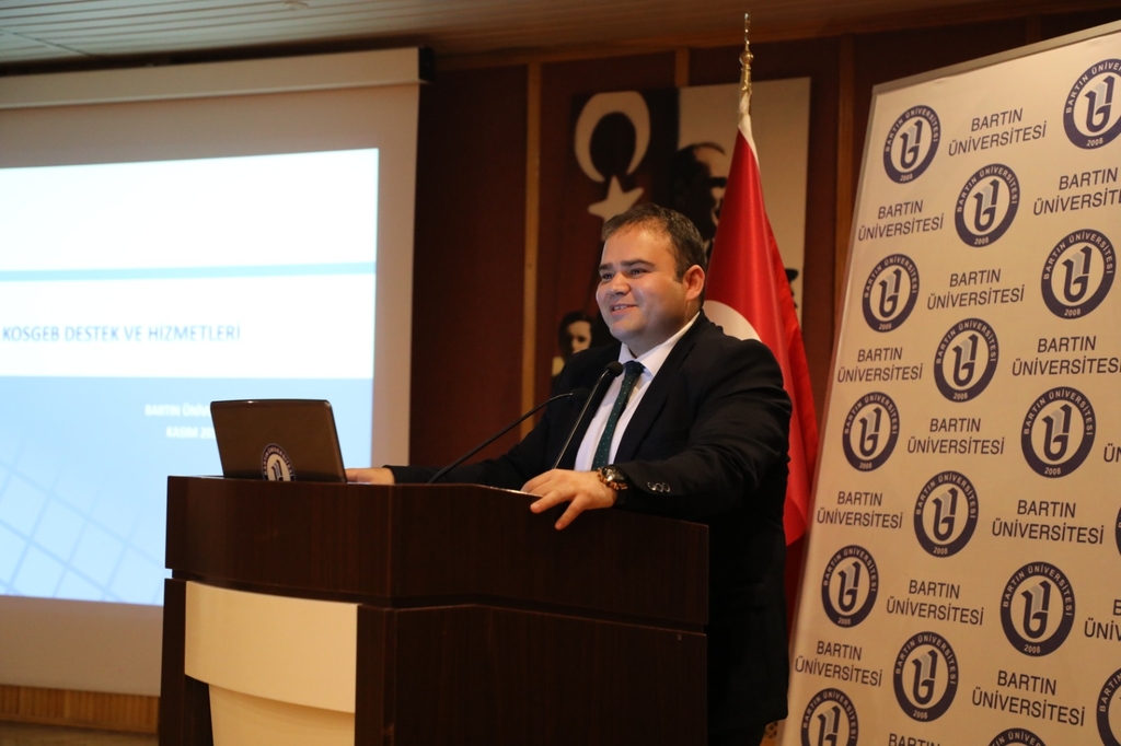 Açılış konuşmasının ardından semineri veren KOSGEB Bartın İl Müdürü Gökhan Akdağoğlu, Sanayi ve Teknoloji Bakanlığı bünyesinde Türkiye genelinde 92 KOSGEB müdürlüğünün olduğunu söyledi.